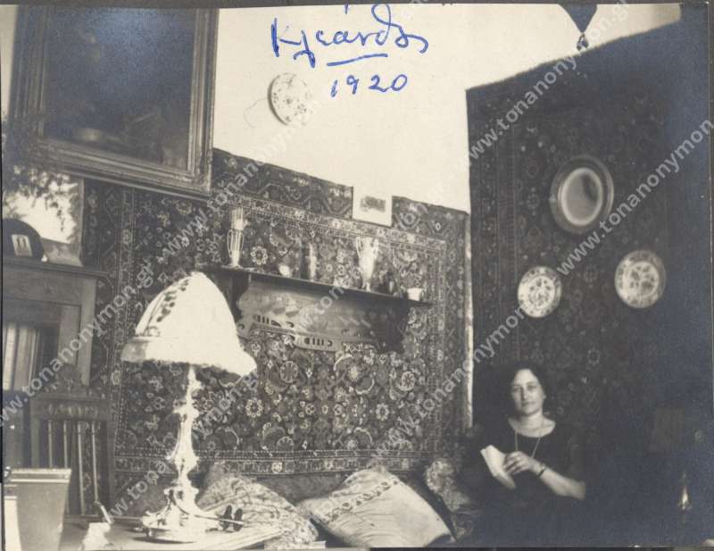 Πορτρέτο της Μυρσίνης Κλεάνθους καθισμένης σε πολυθρόνα