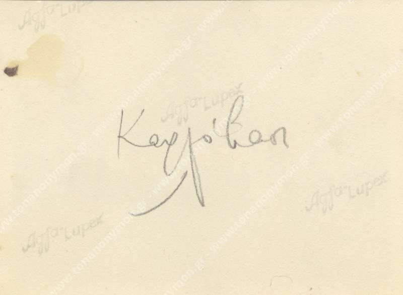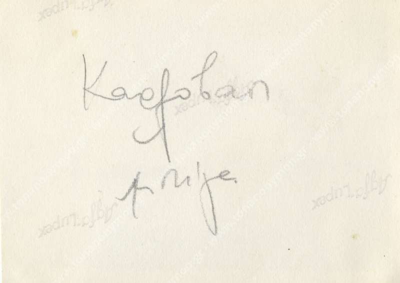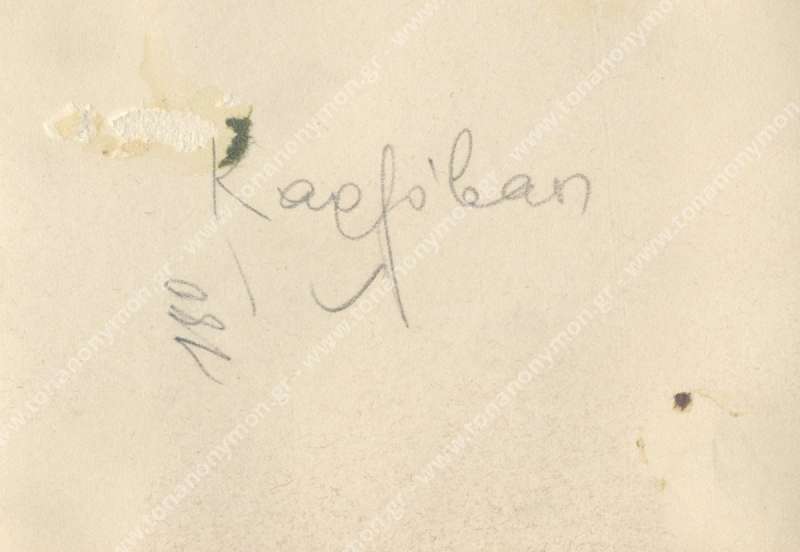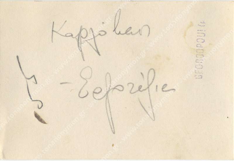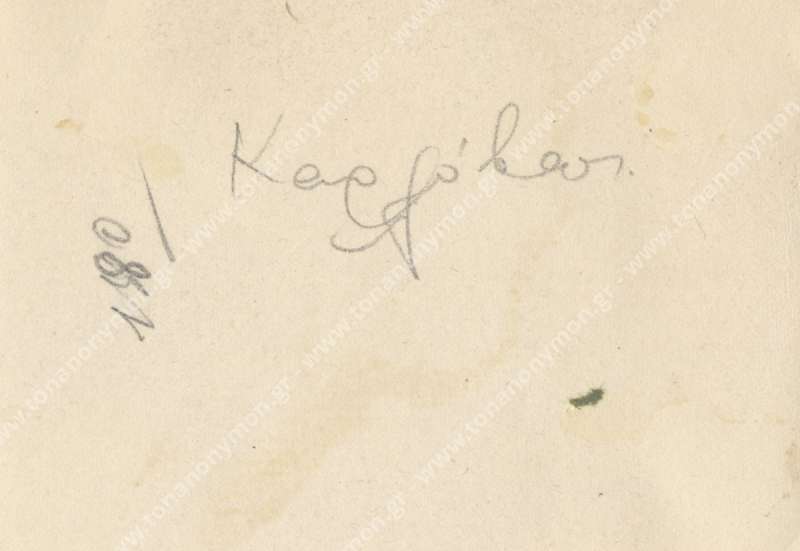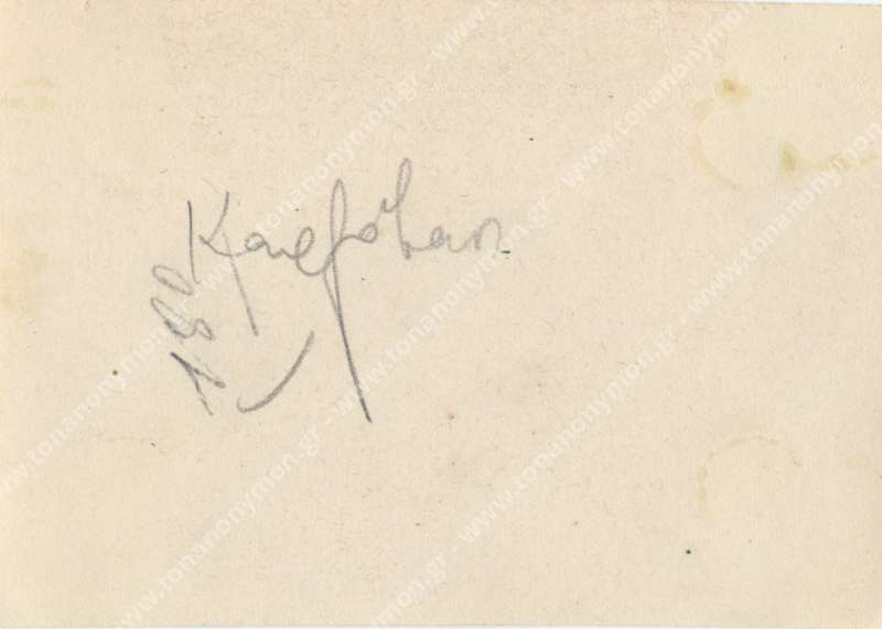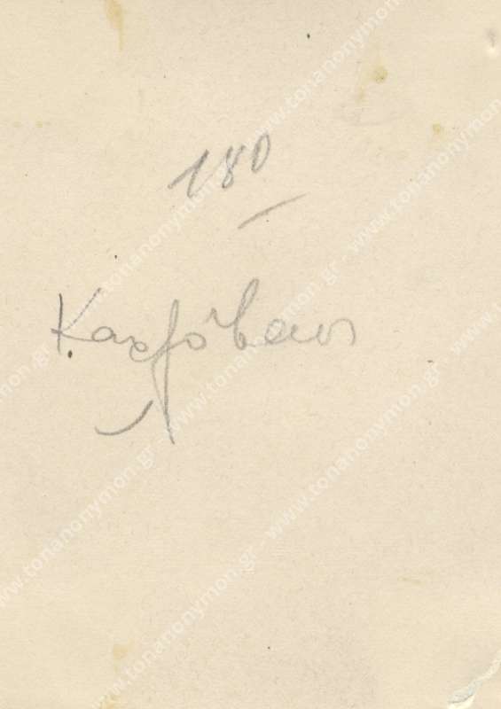 "Καρλόβασι", στην πίσω πλευρά. Υπάρχουν επίσης λέξεις από ένα σημείωμα το υπόλοιπο μέρος του οποίου έχει κοπεί από τη φωτογραφία