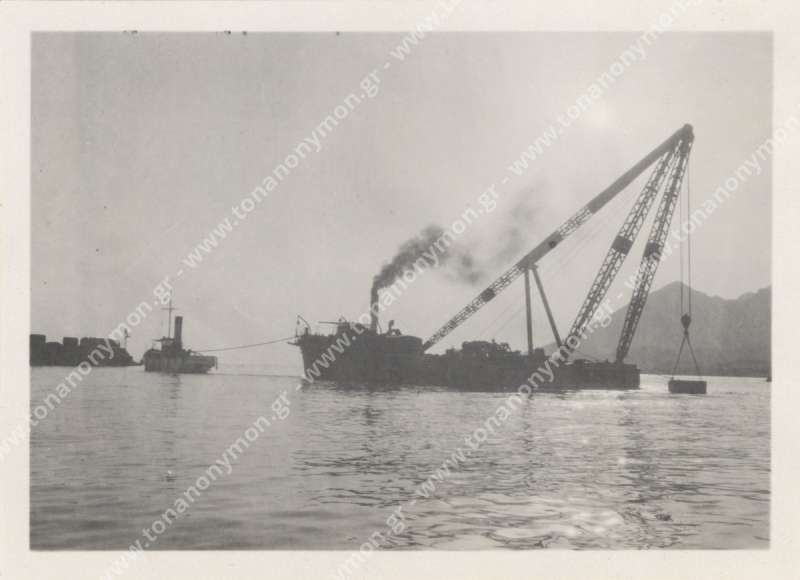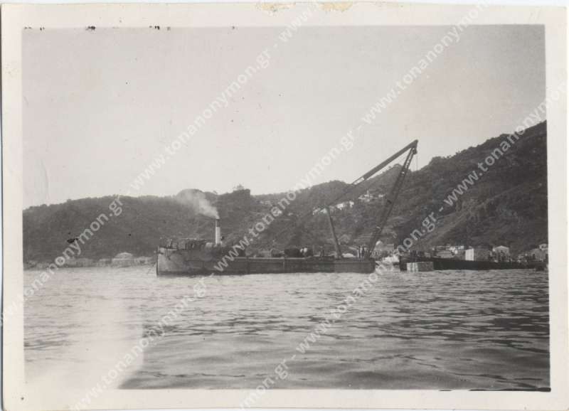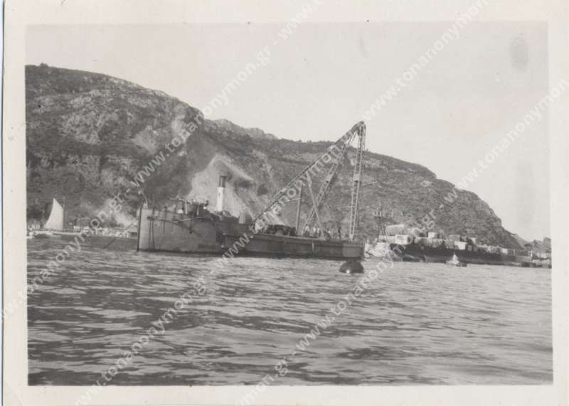 Η Μπίγα της εταιρίας Η&Δ Γεωργόπουλος, μια βάρκα και ένα άλλο πλοίο στο Καρλόβασι