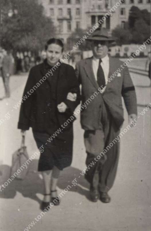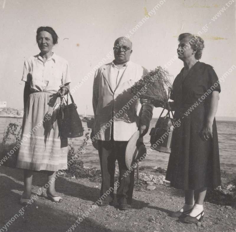 Η Αγλαϊα Γεωργοπούλου και ο Δημήτρης Γεωργόπουλος σε παραλιακό μέρος. Δίπλα τους μια άγνωστη γυναίκα κρατώντας ένα μπουκέτο με λουλούδια.