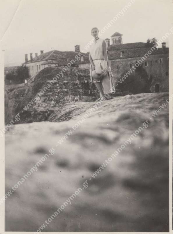 Παρόμοια φωτογραφία με τη σειρά φωτογραφιών 000-0015 έως και 000-0022. Η διαφορά είναι ότι για τη συγκεκριμένη χρησιμοποιήθηκε ασπρόμαυρο φιλμ. Φαίνεται πως υπήρχαν δυο μηχανές για αυτή τη "σεκάνς" των μεταμφιέσεων στην ταράτσα. Η μία με έγχρωμο και η άλλη με ασπρόμαυρο φιλμ. Σύμφωνα με τη μαρτυρία της κας Ναυσικάς Γεωργοπούλου τις έγχρωμες λήψεις έκανε ένας Άγγλος φίλος της οικογένειας, καθώς εκείνη την εποχή στην Αθήνα δεν υπήρχε έγχρωμο φιλμ. Στο αρχείο μας υπάρχουν ακόμη τρεις παραπλήσιες ασπρόμαυρες φωτογραφίες.