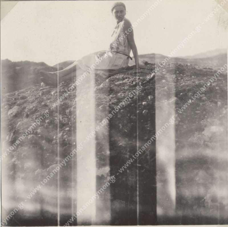 Η Αγλαϊα Γεωργοπούλου ξεκουράζεται πάνω στην κορυφή ενός υψώματος