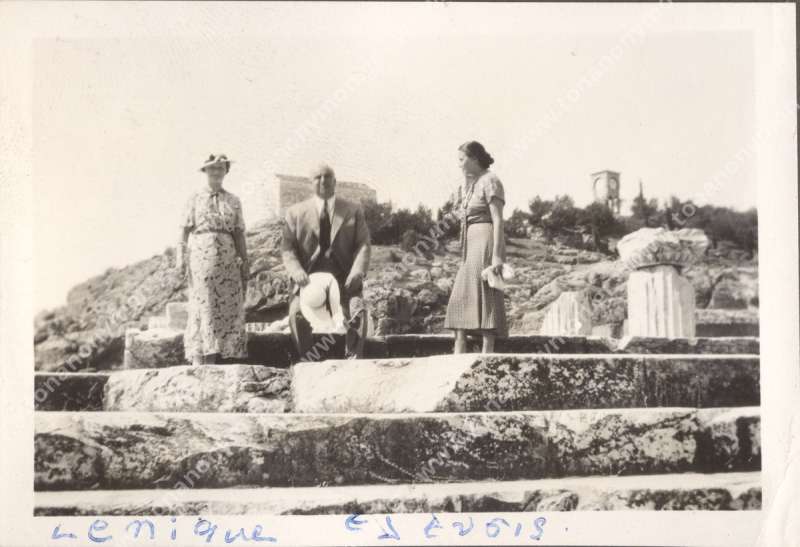 Ο Δημήτρης Γεωργόπουλος ανάμεσα στην Αγλαϊα Γεωργοπούλου και τη Lenique στα αρχαία ερείπια στην Ελευσίνα