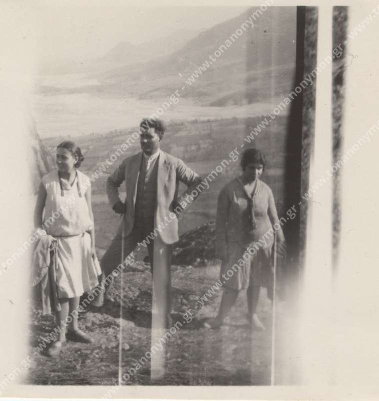 Η Αγλαϊα Γεωργοπούλου ανάμεσα σε δύο φίλες της σε εξοχική τοποθεσία. Η γυναίκα δεξιά μοιάζει αρκετά με τη Νέλλη Ευελπίδη.