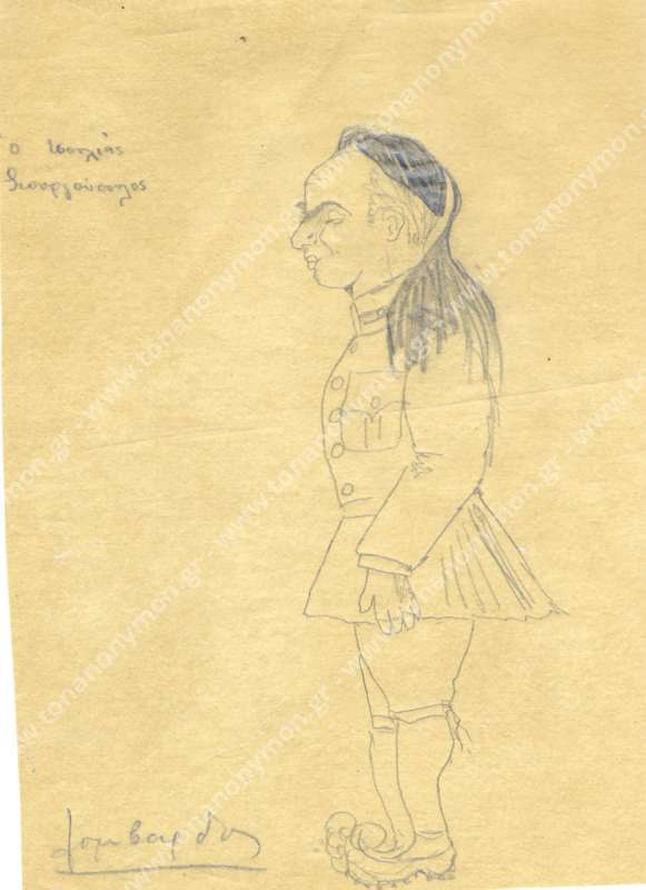 "Δ.Σ.Γ./Άγγ. Λομβάρδος" Το σημείωμα κατά πάσα πιθανότητα αρκετά μεταγενέστρο του σκίτσου, έχει γίνει από τον Δημήτρη Γεωργόπουλο