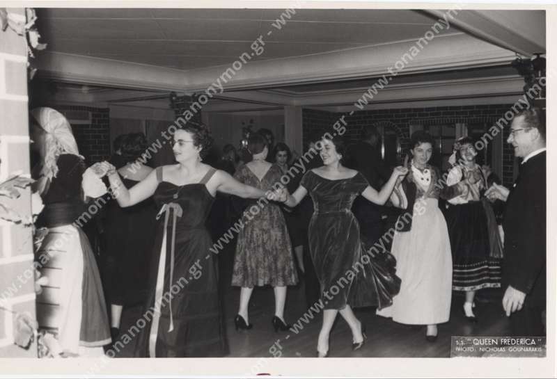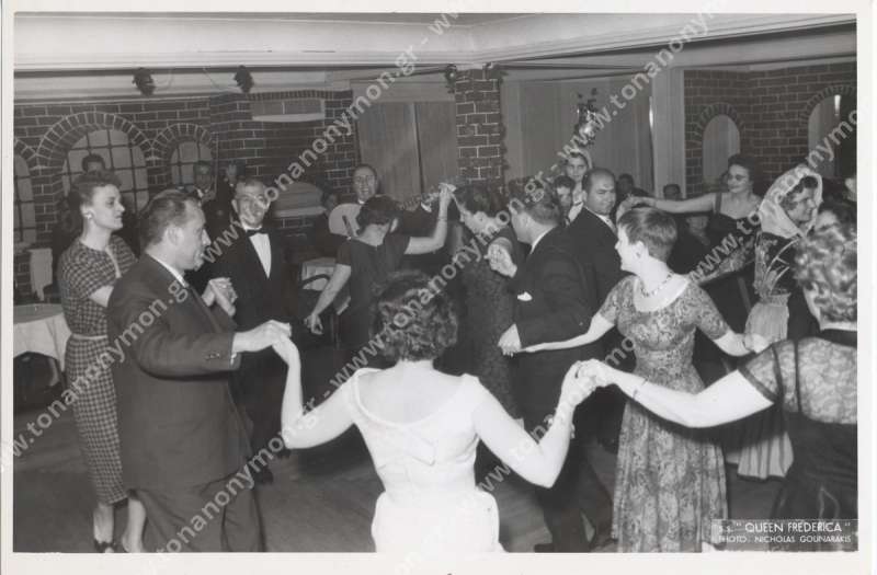 Η Ναυσικά Γεωργοπούλου χορεύει κατά τη διάρκεια εκδήλωσης μέσα στο υπερωκεάνειο