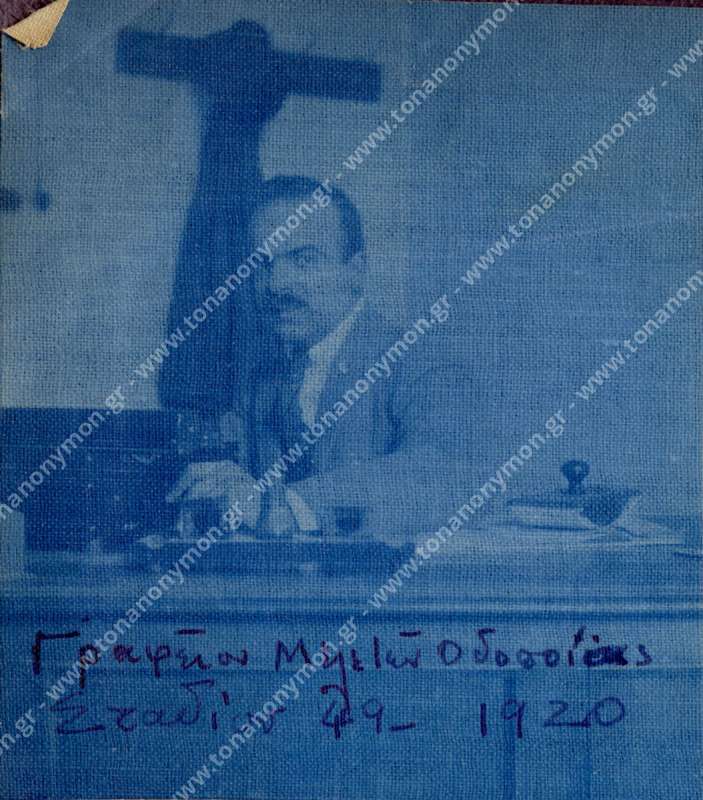 "Γραφείον Μελετών Οδοποιίας Σταδίου 49- 1920" Ο γραφικός χαρακτήρας του σημειώματος επάνω στη φωτογραφία ανήκει στον ίδιο τον Δημήτρη Γεωργόπουλο