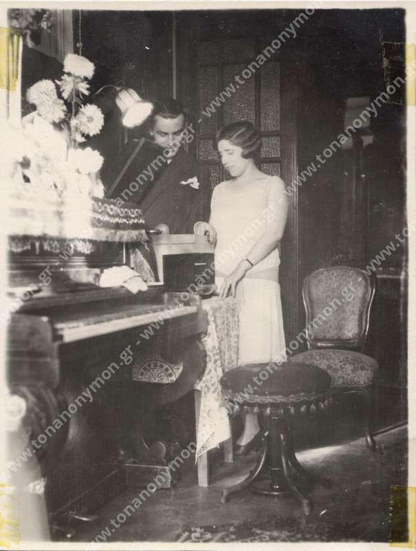 Άγνωστο ζευγάρι κοιτάζει το γραμμόφωνο