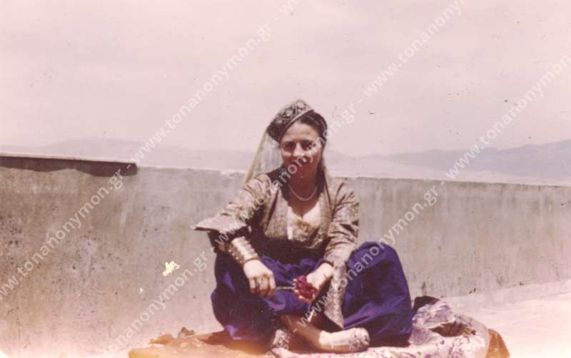 Η Αγλαϊα Γεωργοπούλου στην ταράτσα του σπιτιού της οικογένειας στην Πατησίων φορώντας παραδοσιακή στολή