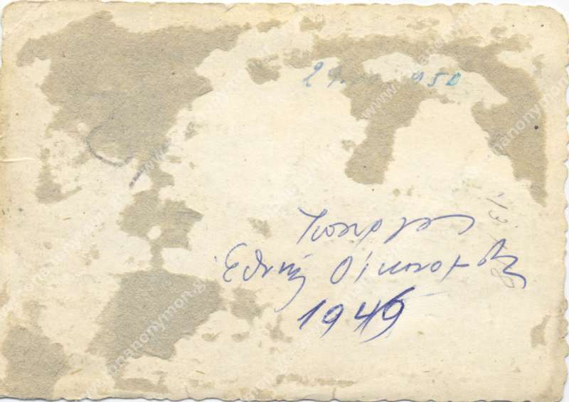 "Υπουργός Εθνικής Οικονομίας 1949". Πιο πάνω "29 [ ...  ] 1950" στην πίσω πλευρά