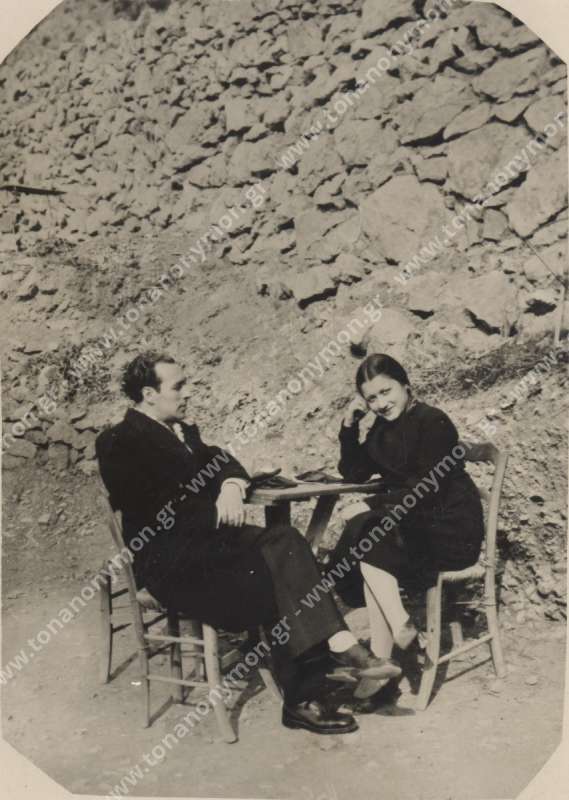 " 23-2-1940 Λυκαβηττός Εγώ με Γεωργακόπουλο", στην πίσω πλευρά