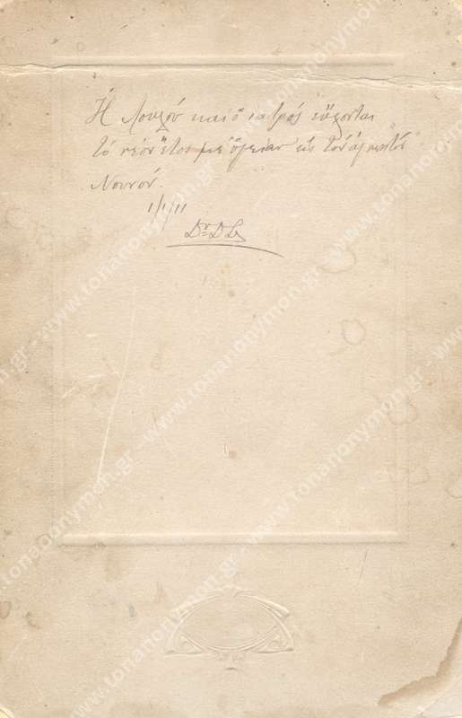 Στην πίσω πλευρά: "Η Λουλού και ο ιατρός εύχονται το νέον έτος με υγείαν εις τον αγαπητόν Νουνόν