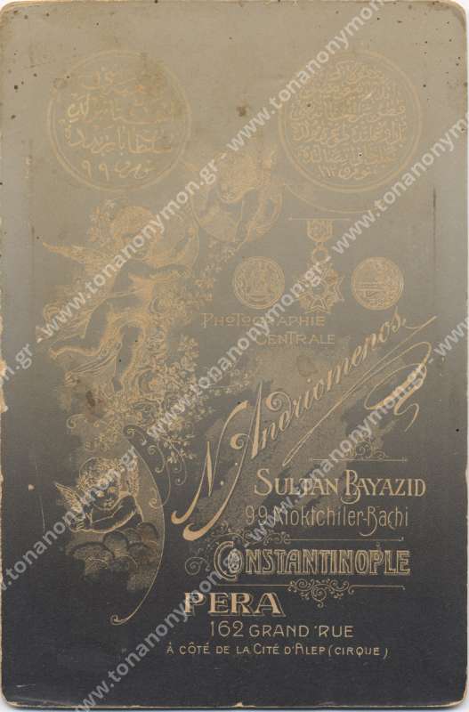 "Πέρα τη ΙΙ/23 Φεβρ. 1899" και η υπογρφή "Γεώργιος Τζόλας", στην μπροστινή πλευρά. Στην πίσω όψη το όνομα "Γεώργιος Τζόλας" σε μεταγενέστερη εγγραφή και από διαφορετικό γραφικό χαρακτήρα