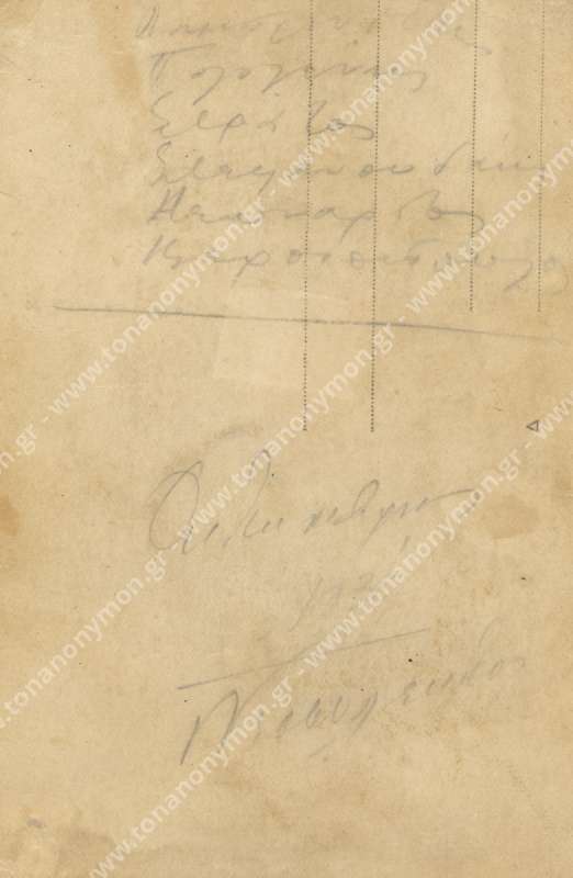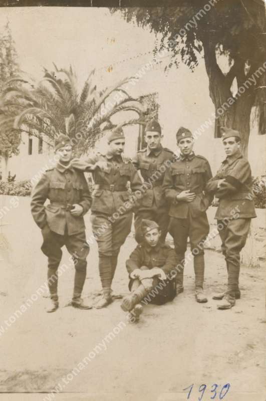Στην πίσω πλευρά αναγράφονται τα ονόματα των στρατιωτών. Διαβάζουμε το όνομα "Στεφανουδάκης". Λίγο παρακάτω "Οκτώβριος 1930", "νεοσύλλεκτοι"