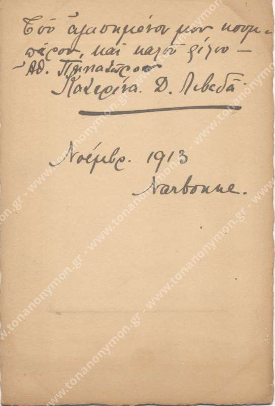 "Του αγαπημένου μου κουμπάρου και καλού φίλου Αθ. Πανδώρου