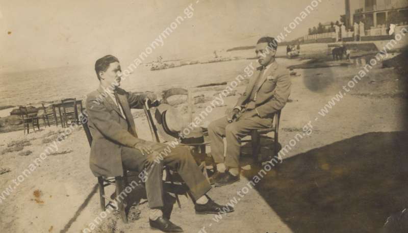 Δυο άντρες καθισμένοι σε παραθαλάσσιο κέντρο
