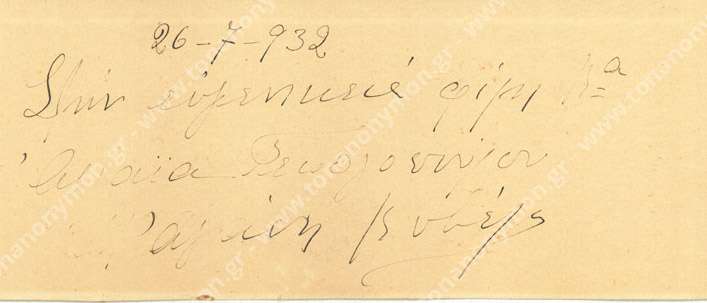 Αυτόγραφο της Κυβέλης, χαρισμένο στη φίλη της Αγλαϊα Γεωργοπούλου το 1932