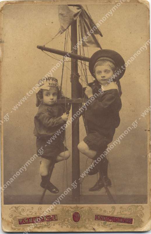 Τα αδέλφια Μεμάς και Κατίνα Γεωργόπουλου ποζάρουν ντυμένα ναυτάκια