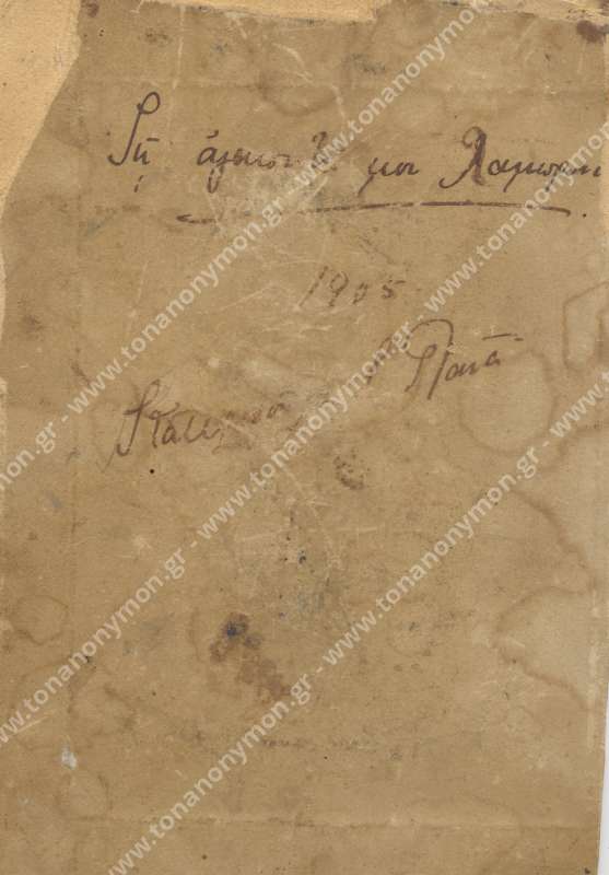 "Τη αγαπητή μου Λαμπρινή 1905 Κατερίνα Πανά" (στην πίσω πλευρά)