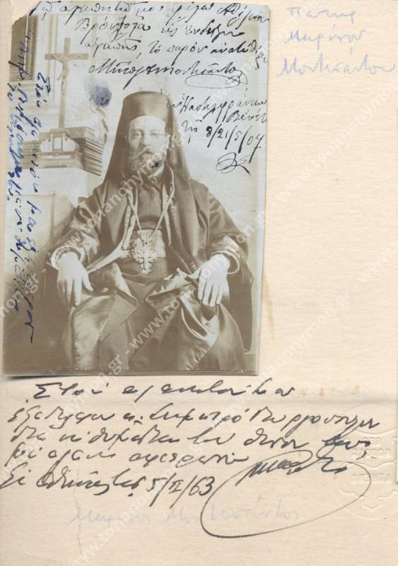 Έξω από το κάδρο της φωτογραφίας αναγράφεται ακόμη, στην πάνω δεξιά πλευρά το όνομα "Πατήρ Μ[α]ρίνου Μοντεσάντου"