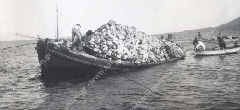 Μια βάρκα φορτωμένη με πέτρα συνοδεύεται από δύο άλλες μικρότερες