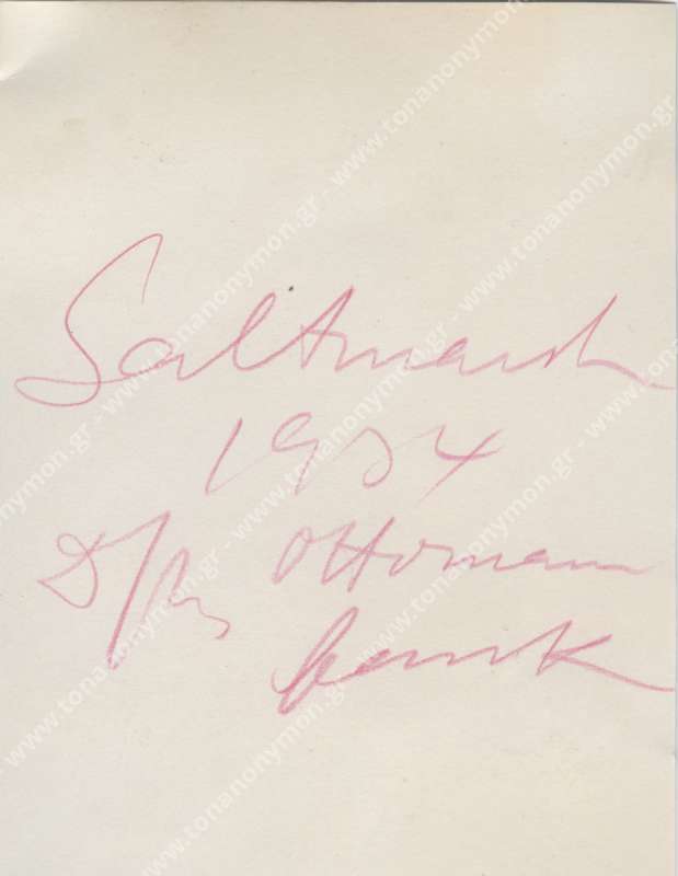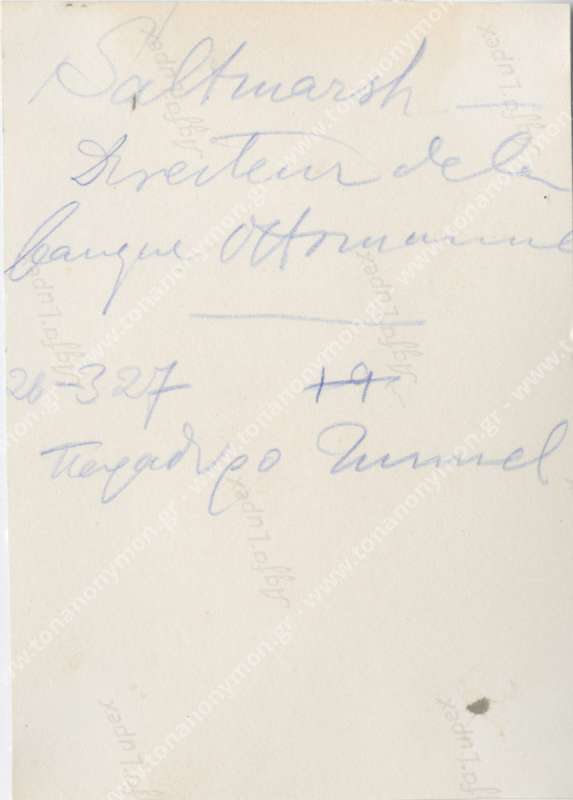 "Saltmar[sh]directeur de la Banque Ottomanne26-327Παράθυρο []mmel", στην πίσω πλευρά