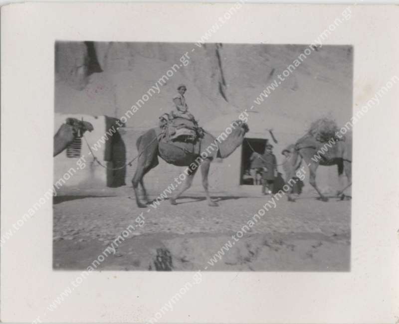 "Στον κήπο του ξενοδοχείου Naderi στην Τεχεράνη την Παρασκευή 25-5-34 που είνε και τα γενέθλια του Μπούνου Μπούνου ο κήπος είνε ωραίος και έχει πάρα πολλές τριανταφυλλιές και πάρα πολύ ωραία τριαντάφυλλα και έχει πολλά λουλούδια και δένδρα", στην πίσω πλευρά
