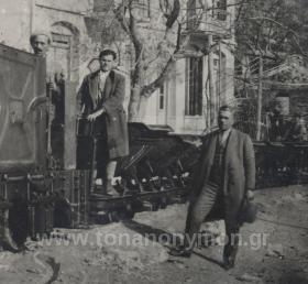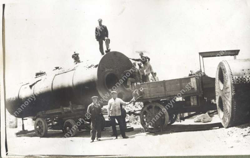 Ο Σταύρος και η Ναυσικά Γεωργοπούλου μπροστά σε μηχάνημα της εταιρίας του Δ. Γεωργόπουλου