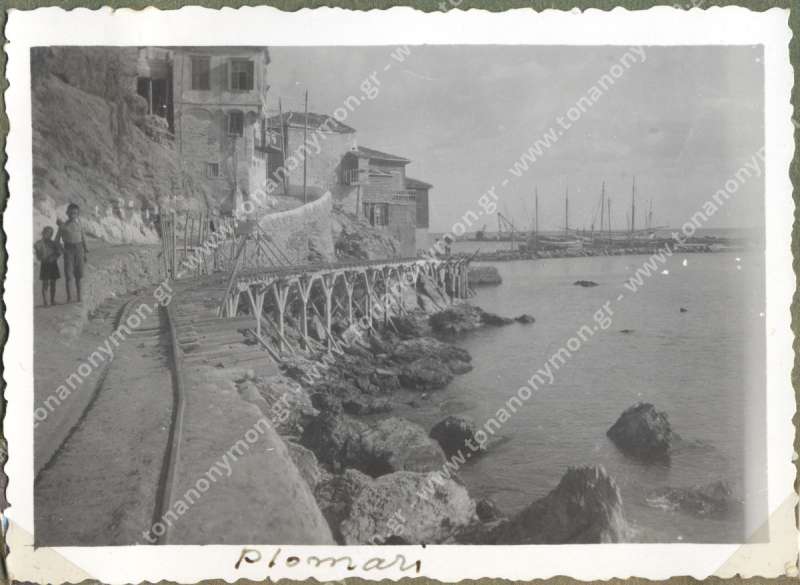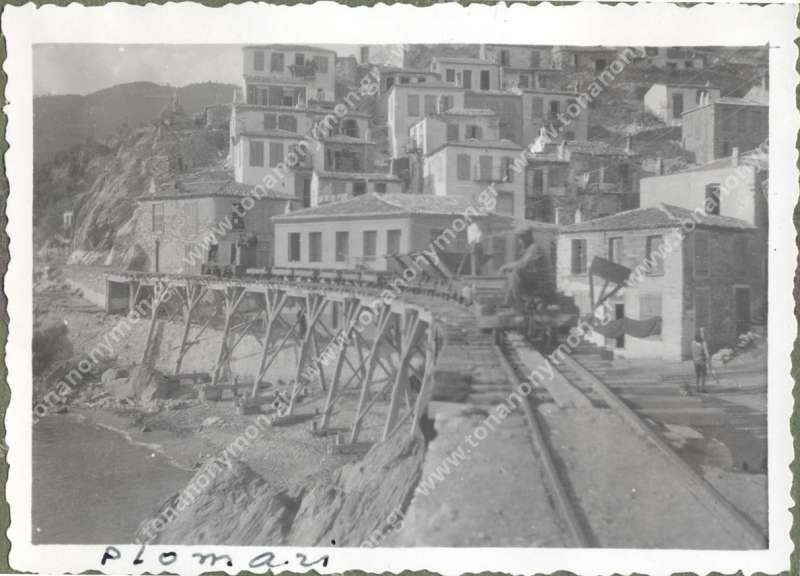 Ένας άνδρας πάνω σε βαγονέτο τοποθετημένο σε ράγες μπροστά στην παραλία του Πλωμαρίου