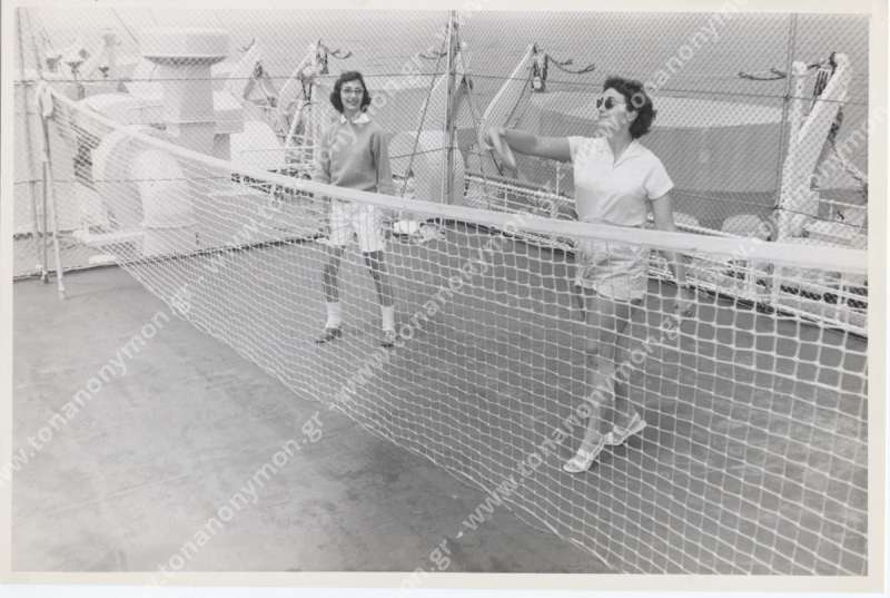 Δυο γυναίκες παίζουν τένις στο κατάστρωμα του πλοίου