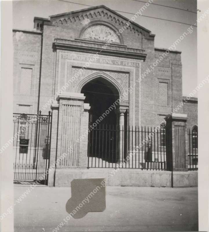 Εξωτερικό της Imperial Bank of PersiaTeheran Aout 1934", στην πίσω πλευρά
