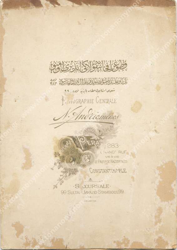 Υπάρχει ένα ακόμη αντίγραφο της ίδιας φωτογραφίας χωρίς την επωνυμία του φωτογραφείου στην εμπρόσθια όψη.Στην πίσω του πλευρά αναγράφεται "Δημοσθένης Γερ. Γεωργόπουλος, Άννα (Tata) Γεωργοπούλου το γένος Κομποθέκρα".