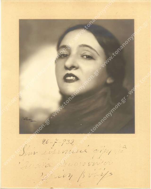 Αυτόγραφο της Κυβέλης, χαρισμένο στη φίλη της Αγλαϊα Γεωργοπούλου το 1932
