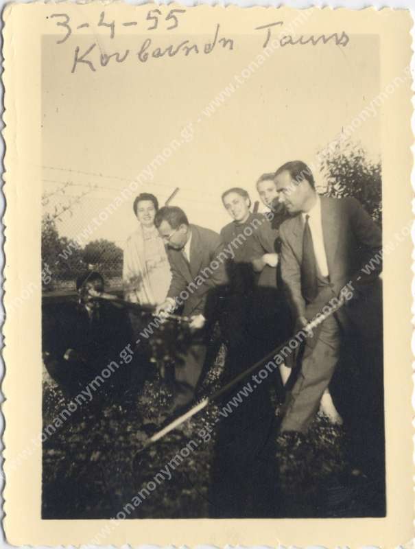 "3/4/55", στην πίσω πλευρά. "3-4-55 Κουβουνίδης Τάκης", στην εμπρόσθια όψη