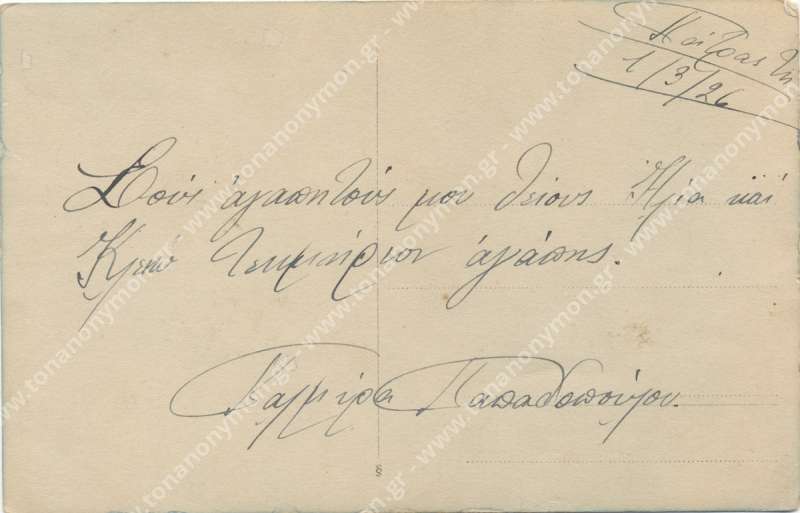 Παλμύρα Παπαδοπούλου", στην πίσω πλευρά