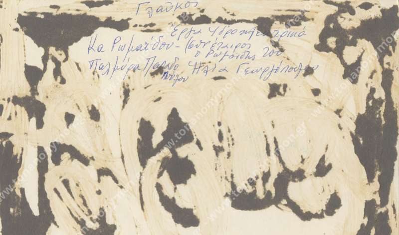 "ΓλαύκοςΈργα Υδροηλεκτρικάκα Ρωμαϊδου (συνέταιρος ο Ρωμαϊδης του Η.Γεωργόπουλου)Παλμύρα Παπαδοπούλου", στην πίσω πλευρά