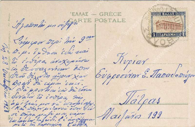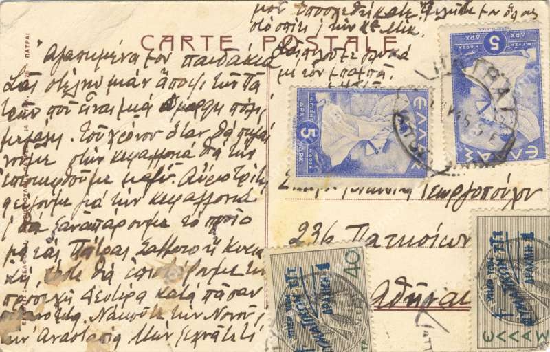 Παραλήπτης: "Δεσποινίδα Αγλαϊα Η. Γεωργοπούλου εις Αθήνας"