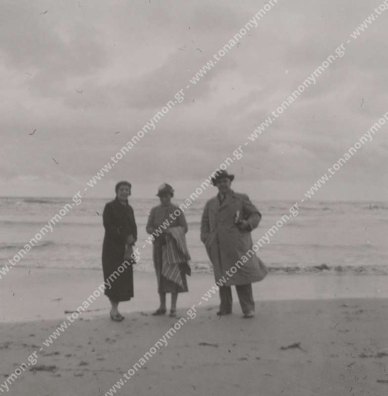 Ο Δημήτρης Γεωργόπουλος με δυο γυναίκες στο πλάι του, φωτογραφίζεται με φόντο τη θάλασσα