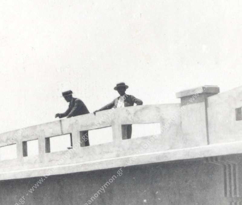Δυο άνδρες στηριγμένοι στο στηθαίο της γέφυρας. Ο ένας κοιτάζει προς την κατεύθυνση του φακού
