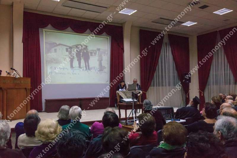 Τις φωτογραφίες που προέρχονται από το αρχείο "Των Ανωνύμων", αλλά και το υπόλοιπο οπτικό υλικό, σχολίασε ο κ. Λουκάς Χριστοδούλου δίνοντάς μας έτσι συνοπτικά την ιστορία της Νέας Ιωνίας. Ενώ ο κ. Χάρης Σαπουντζάκης εντυπωσιάσε τους ακροατές, καθώς αναφέρθηκε στις εκλογές που διεξήχθησαν στο μεσοπόλεμο παραθέτοντας επί μία σχεδόν ώρα εκλογικά αποτελέσματα, ονόματα υποψηφίων, ποσοστά κλπ, από μνήμης, χωρίς να ανατρέξει σε κανένα βοήθημα ή υποστηρικτικό υλικό.