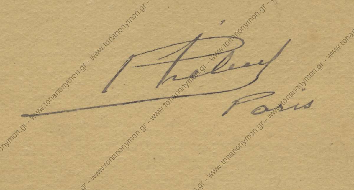 Φωτογραφία γάμου, τραβηγμένη στο Παρίσι, με την υπογραφή "Phele[r]y". Εντοπίστηκε σε παλαιοπωλείο στο κέντρο της Αθήνας.